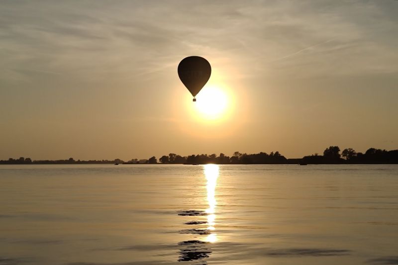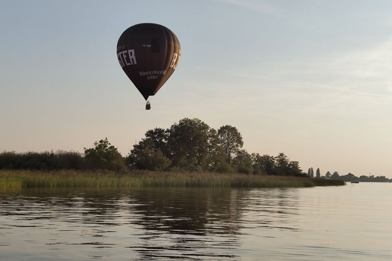 Net als je denkt de Langweerder Wielen helemaal voor jezelf te hebben hoor je iemand hallo roepen. Er vaart een luchtballon voorbij. Ja, daar had ik niet aan gedacht.