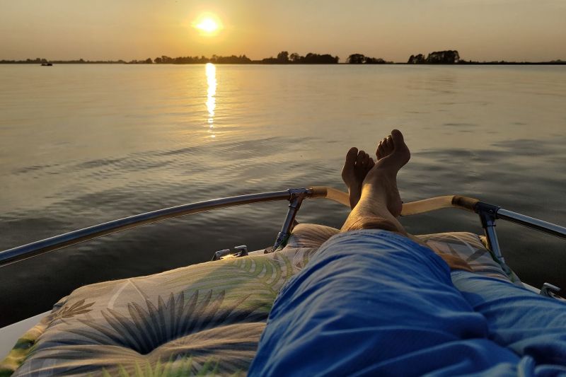 De twee vaarroutes zelf heb ik nu wel zo'n beetje gezien. Ik maak er nu een gewoonte van om het anker uit te gooien. Liefst aan de oostkant van de Langweerder Wielen want daar is het ondiep en heb je een mooie stevige en zanderige bodem, wel zo prettig als je ook wilt zwemmen.