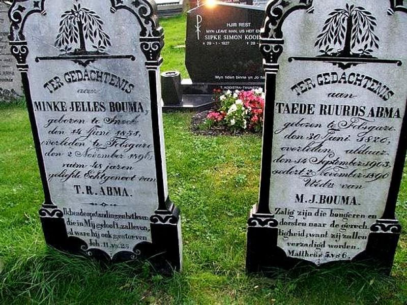 Taede Ruurds Abma is op 30 juni 1826 in Folsgare aan de ‘leane’ geboren en wordt aangegeven op 1 juli 1826 door zijn vader Ruurd Freerk Abma met de getuigen Fedde Oeges Breeuwsma en Hendrik Uiltjes Hoekstra, beiden boer en buren van de ouders Ruurd Freeks Abma en Hiltje Klazes Wiersma.