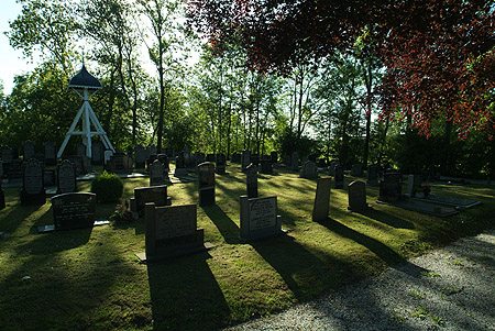 Der Friedhof, bis vor 200 Jahren noch neben einer Kirche gelegen, fällt auf durch einen schweren gußeisernen Zaun mit vielen Todes-Symbolen (1880 errichtet). Der weiße Glockenstuhl verfügt über eine Glocke, die schon 1545 von Johan ter Steghe gegossen wurde. Nahe der Brücke am Agge-Douwes- oder Langesloot sind die einzelnen Häuser schon zu kleinen Nachbarschaften geworden, im Süden davon liegen Bauernhöfe, die meist aus der Zeit Ende des 19. Jh. stammen; am beeindruckendsten der Kopfrumpfbauernhof mit großem Melkkeller.