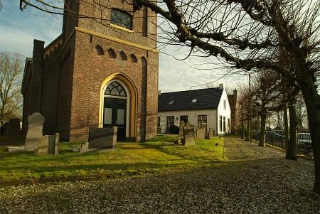 Die 1876 gebaute Kirche erhebt sich auf einem Dorffriedhof, umgeben von einem eisernen Zaun. Auffallend die friesisch Blau gebrannten Dachziegel des Gebäudes, das, reichlich verziert, im Innern über eine imposante Orgel verfügt.