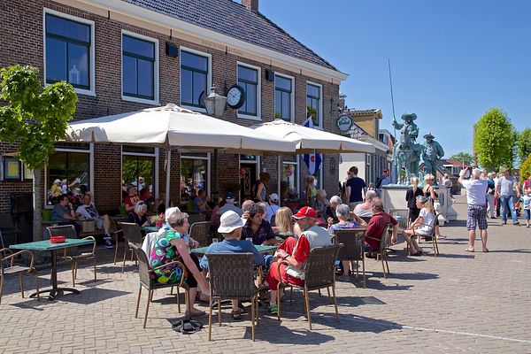 Tussen plein en kerk en de oostelijke oever van de Franekervaart bestaat een wirwar aan steegjes met oude en minder oude huizen, huisjes en een hoog kaaspakhuis. Aan de vaart afwisselend een kade, overtuinen en particuliere tuintjes aan het water, waardoor een schilderachtig kruip door sluip door is ontstaan. Ten westen van de brug over de Franekervaart staan nog enkele rentenierswoningen en verderop liggen buurschappen met monumentale boerderijen: Wieuwens of Sprong en Skrins.
