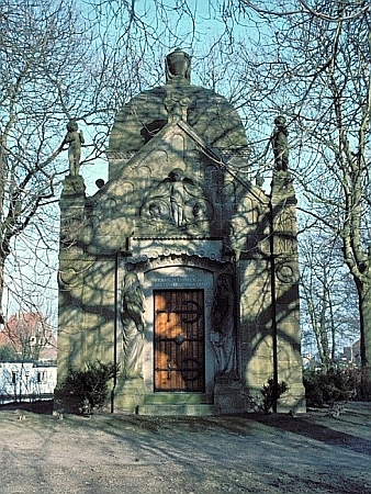 Het ontwerp en het beeldhouwwerk van dit bijzondere mausoleum uit 1906 in Sezessionstijl is van Johann Hinrich Schröder, Duitser van komaf en tijdelijk woonachtig in Leeuwarden, maar later gevestigd in Amsterdam.