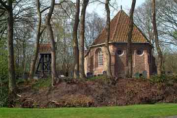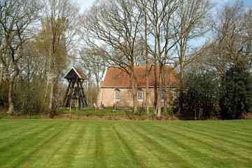 Op it hôf stiet in lytse houten klokkestoel mei in sealdak dy’t in 15e-ieuske liedklok herberget. Tsjerke en klokkestoel stean op in sfearfol, troch beammen omseame tsjerkhôf. Dat is yn de 20e ieu útwreide ta in grut, kreas ûnderhâlden begraafplak, dêr’t ek in krematoarium by heart. Yn it westen fan it doarp stiet in oantal monumintale boerepleatsen. Sa as tichteby de Engelenfeart in modeltype kop-hals-romppleats ‘Rikazathe’ út om-ende-by 1860 mei molkenkelder, bôgesletten finsters en rûnsletten skuorredoarren en in hearlik ynbannich hiem.
