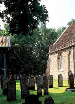 De tsjerke is in letgoatysk gebou mei steunbearen en in trijekantich sletten koar. It gebou is oplutsen fan reade kleastermoppen dy’t sa te sjen by in fernijing opnij brûkt binne. Der wurdt ornearre dat dit yn de 15e ieu bard is, mar mooglik ek letter. Yn de súdgevel sit in tichtset spitsbôgich lansetfinster, mar de gevels binne no iepen mei rûnbôgige finsters. De foargevel wurdt ek skoarre troch steunbearen en de geveltop is nei alle gedachten yn de 18e ieu fernijd yn lytse stien.