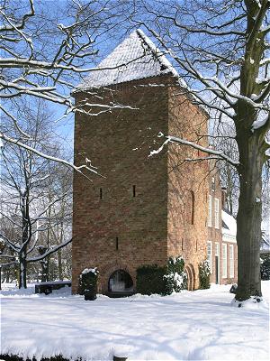 De ienfâldige doarpstsjerke mei in yn it westlike part fan it skip opnommen sealdaktoer is yn it midden fan de 17e ieu (1648) boud om in âlde foargongster te ferfangen. Dy is ferskate kearen makke. Foar it tsjerkhou stiet it yn 1778 stichte, eardere skoalhûs oan de Haadstrjitte. De skoalle is inkele jierren lyn sloopt. Dêrnjonken tsjûget in buorkerij mei in dwers pleatst hearehûs út 1902 fan in agrarysk ferline.