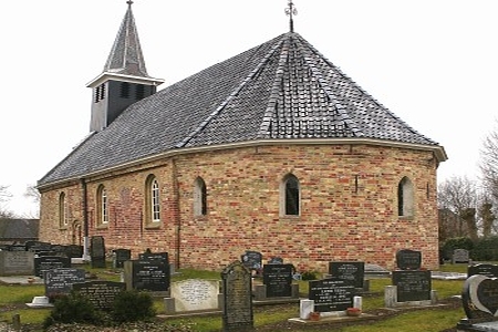 De Johannes de Doperkerk staat op het restant van de grotendeels afgegraven dorpsterp. Zij is in de 13de eeuw gebouwd van gele en rode kloostermoppen als een zaalkerk met een rondgesloten koor. Dit koor is omstreeks 1300 verhoogd en toen is het schip aan de westzijde verlengd. Daar kwam ook een toren te staan. Het oudste, oostelijke gedeelte van het schip wordt door lisenen en een uitgemetselde daklijst geaccentueerd; het iets jongere westelijke gedeelte bezit kwartronde lijsten onder de dakvoet. Het romaanse karakter van de kerk is het beste aan de noordzijde te herkennen. Daar zijn bij de restauratie van 1963-’66 in het oudste, ingedeukte en van sierranden voorziene muurgedeelte drie romaanse vensters hersteld naar gevonden sporen. Er is een dichtgezette, romano-gotische ingang met een rondstaafprofiel tussen een dubbele rondboog. In de zuidelijke muur staat een poortje (met een asymmetrisch geplaatste deur) van iets ander model: door rondboog- en segmentvormen lijkt deze sikkelvormig gesloten. In deze muur zijn in later tijd drie flinke rondboogvensters geplaatst. Tussen die in het oudste gedeelte is een dichtgemetseld klein spitsboogvenster als spoor bewaard gebleven. In de ronde koorsluiting staan kleine spitsboogvensters.
