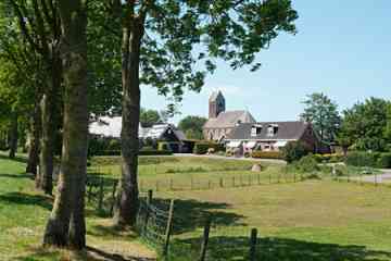 Het eenbeukige zaalkerkje is in het midden van de 16de eeuw met hergebruik van ouder bouwmateriaal opgetrokken op de plaats van een voorgangster en werd in 1642 omklampt. Zij heeft een vijfzijdige koorsluiting. De zadeldaktoren is ingebouwd en verschillende keren op veel plaatsen met kleine steen gerepareerd en vernieuwd. Zo gebeurde dat in 1851. De toren is aan de noord- en zuidzijde met houten delen bekleed. Wellicht omdat de diepe nissen die op een van de historische portretten zijn te zien moeilijkheden veroorzaakten. In de toren hangen een mogelijk 14de-eeuwse klok en een klok uit 1404. De in 1973 gerestaureerde kerk bevat een preekstoel uit 1642, die overeenkomsten vertoont met die van Reitsum.