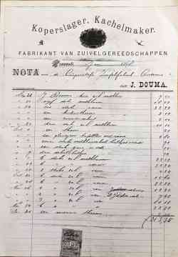 Een rekening van Jan Douma, de koperslager, kachelmaker en... fabrikant van zuiv