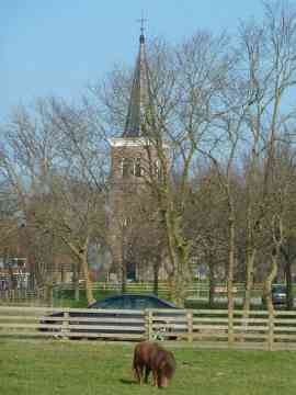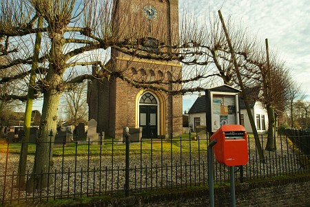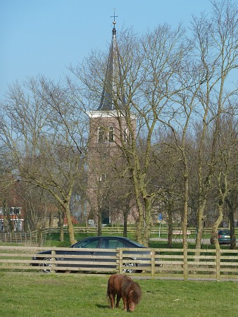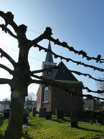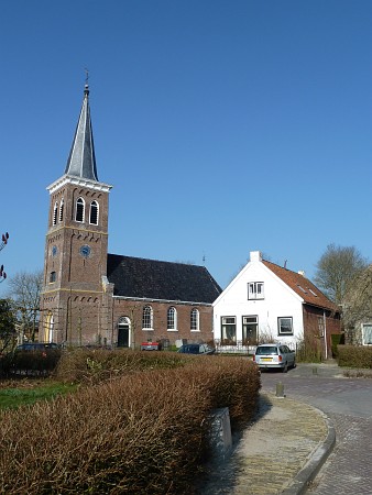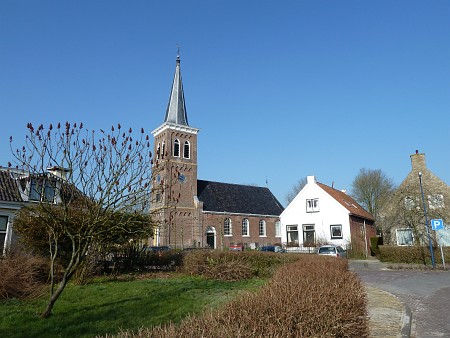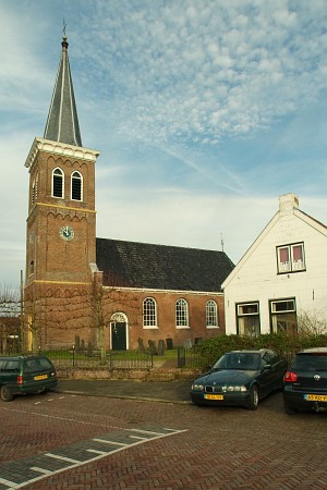 De in 1876 gebouwde kerk staat aan de dorpsstraat op een ruim, hoog en door een muurtje met ijzeren hek en jonge leilinden beschermd kerkhof. Het gebouw heeft ongeleed bruin muurwerk met rondboogvensters. Er is een driezijdig gesloten koor met pilasters. De goten worden gedragen door kleine consoles en op het dak liggen blauw geglazuurde Friese gegolfde pannen. In de toren zit boven de ingang een spitsbogig venster met een dubbelbolle omlijsting van pleister. De drie torengeledingen zijn met friezen versierd. Er zijn spitsbogige galmgaten, acanthusconsoles onder de kroonlijst en een ingesnoerde achtzijdige spits met leien. Inwendig bezit de kerk een aardig orgeltje en een decoratieve kraak met opengewerkt hek.