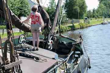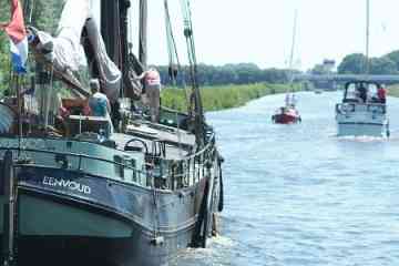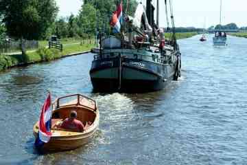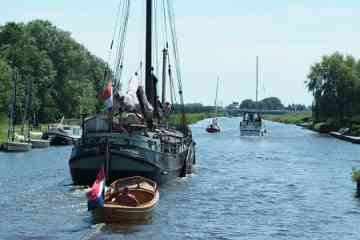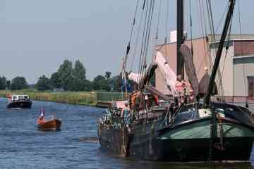 In de Tegenwoordige Staat van Friesland werd in 1788 bij Oldeouwer gemeld: ‘Johannes Assema, en die van Douma en Solkama deeden den reeds gemelden Nieuwen Rhyn graaven; en dewyl hier door eene nieuwe doorvaart wierd geopend, die veel bekwaamer was, dan de door droogte verlamde Oude Rhyn, tot het vervoeren van turf, die hier in groote menigte plag gegraaven te worden, hebben de Staaten van den Lande Oktrooi verleend aan de Eigenaars, doorgaans Rhynheeren genaamd, om een’ tol van twee Stuivers te mogen heffen van ieder Schip, dat vaaren zoude door de brug, welke door hen gelegd was over gemelde vaart, door den Ouwster rydweg, van de Joure naar Sloten loopende, en naar de Scharren, een buurtje van verscheiden boerehuizen, niet verre van daar gelegen, de Scharster brug genaamd; gelyk deeze tol daar nog heden betaald wordt, aan de Herberg, by deeze brug staande.’ De weg was aanvankelijk slechts een pad; in de 19de eeuw werd een kunstweg aangelegd die Haskerland en Doniawerstal ging verbinden.