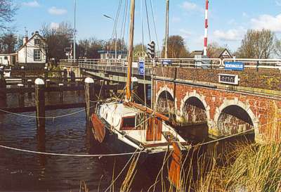 In 1906 werd het veer vervangen door een vaste oeververbinding: een draaibrug. Op de zijkant van de hoofdligger aan de westelijke kant is een gietijzeren wapen aangebracht. Aan weerszijden van de draaibrug zijn vaste, gemetselde landhoofden gebouwd, met rondboognissen gemetseld in rode baksteen, die de brug een markant uiterlijk geven. Aan de noordoever van het Reitdiep staat de brugwachterswoning uit 1906 een witgepleisterd eenvoudig gebouw met zadeldak. De brug staat op de nominatie om vervangen te worden door een nieuwe, bredere brug.