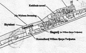 In 1855 is Willem Sjerps Twijnstra 63 jaar oud en 25 jaar slager in Folsgare. Hij is getrouwd met Japke Pieters Boomsma en hun kinderen hebben bijna allemaal het ouderlijk’huis verlaten. Het wordt tijd voor iets anders. Ze laten op het eind van de Tsjaerddyk, naast de slagerij op hun eigen erf, een koemelkerij bouwen met ruimte voor vier beesten. Willem Sjerps kan het nu wat rustiger aan doen maar heeft toch nog iets om handen. Geertje, de jongste dochter, blijft bij hen wonen en wordt mantelzorgster.