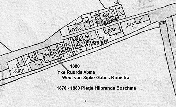 Pietje Hilbrands Boschma woont vanaf haar geboorte in 1833 in Folsgare maar verhuist in 1872 naar Oosthem. Ze voelt zich daar niet thuis en wil terug naar Folsgare. In 1876 koopt ze van haar jongste broer Jouke Hilbrands Boschma een stukje onbebouwde grond aan de Tsjaerddyk met kadaster no 739.( later Tsjaerddyk 32) Hierop laat ze een huis bouwen waar ze gaat wonen in een omgeving waar ze is opgegroeid en de mensen kent. Pietje Hilbrands trouwt in 1880 met Jan van Netten en het huis aan de Tsjaerddyk komt in de verkoop. Rinke Douwes Reitsma koopt het huis voor zijn schoonmoeder Yke Ruurds Abma. Yke blijft aan de Tsjaerddyk wonen tot haar overlijden in 1893. Na het overlijden van Yke Ruurds wordt er boedelscheiding gehouden en komt het huis in bezit van Rinke Douwes Reitsma. Het huis wordt verhuurd maar blijft in eigendom van de familie Reitsma. Hinke Rinkes Reitsma en haar man Albert Jans Twijnstra erven het huis in 1903 en willen het verkopen. In november 1904 koopt Rients Hiddes Frankena het huis, maar het komt pas vrij in 1905.