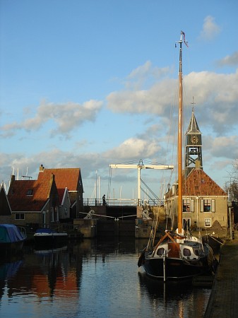 . Nadat in 1643 de toenmalige houten sluis wegspoelde tijdens een storm werd aanvankelijk een nieuwe sluis van hout gebouwd. Toen in 1669 ook die niet bestand bleek tegen een storm besloot men een stenen schutsluis te bouwen. De houten ophaalbrug stamt oorspronkelijk uit de 18e eeuw.