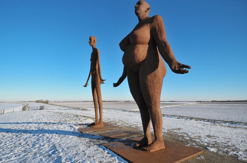 Op de Waddenzeedijk boven Holwerd staat de beeldengroep "Wachten op hoog water" van kunstenaar Jan Ketelaar.