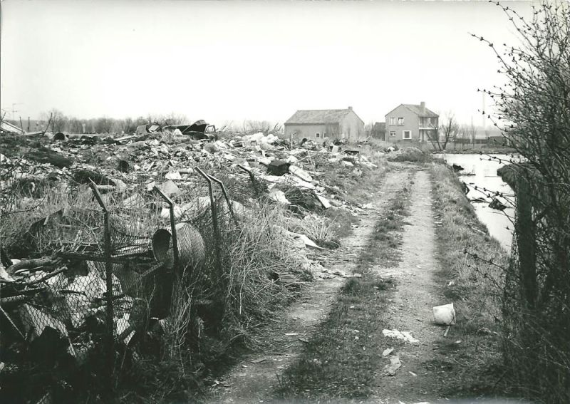 Paviljoen de Krom met de daarachter gelegen afvalstortplaats.