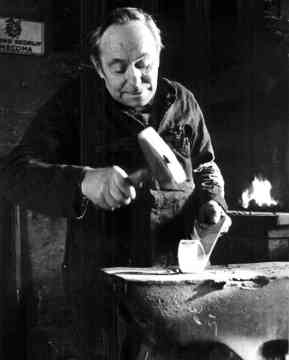 U verwacht misschien een reus,met door de vuurgloed geteisterd gezicht en door het moker-zwaaien gestaalde vuisten? Of denkt u aan dat kleine mannetje met die vérdragende stem die veelal voorafgegaan door zijn echtgenote per rijwiel het dorp doorkruist? Misschien voldoet hij uiterlijk niet aan uw verwachtingen; wat de vuisten betreft lijkt mij desondanks voorzichtigheid geboden!