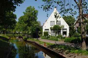Noordelijker staat in een levendig ritme hoofdzakelijk 19de-eeuwse bebouwing langs de vaart, waarbij vooral van de meer oostelijk gelegen huizen de bijzondere pannen op de daken opvallen. Dat zijn de rood of blauw geglazuurde Lucas IJsbrandpannen met een leivormig patroon, ontwikkeld in Makkum en op het panwerk van Achlum nagemaakt in de periode rond 1900. Bij de vaart staat tussen de schilderachtige bebouwing de karakteristieke voormalige dorpsherberg. Ten westen van de dorpskom is enige bedrijvigheid te vinden en de dorpsuitbreidingen hebben na de oorlog vooral in het oosten, aan de andere kant van de Hitzumerweg plaats gevonden.