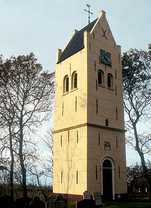 Het had door de ligging aan een druk vaarwater potenties, maar het bleef een kleine agrarische nederzetting. Er kan zelfs nauwelijks gesproken worden van een nederzetting omdat Eagum geen dorpskom heeft. Als kern doet het hoge met oude elzen omzoomde kerkhof met een opvallende, eenzame toren zijn best. De kerk voor de weinige bewoners van Eagum heeft het nog tot 1838 uitgehouden. Nog geen eeuw eerder, in 1777, was zij vernieuwd en verving zij de aan de Heilige Nicolaas gewijde middeleeuwse kerk. De kleurige gedenksteen vertelt dat de zevenjarige Cornelis Arent van Scheltinga in dat jaar de eerste steen heeft gelegd. Hij was het zoontje van de grietman van Idaarderadeel. De kleine gemeenschap heeft het onderhoud van de kerk niet kunnen volhouden. Die werd daarom, compleet met kansel, kraak en banken, in 1838 verkocht en afgebroken. De toren is gehandhaafd. Ook het kerkhof bleef, maar de andere gedeelten van de terp zijn afgegraven en de vruchtbare aarde werd onder de Eagumer boeren verdeeld. De toren kan dateren uit omstreeks 1300, maar dat is met de in 1888 aangebrachte pleisterlaag – met schijnvoegen die blokken suggereren – aan de buitenzijde niet te controleren. Aan de oostzijde waar de kerk stond, zit een fraaie deur in een zware omlijsting van pleister in hol-bol profiel. Het verhaal gaat dat de toren bij het middelpunt van de wereld ligt.