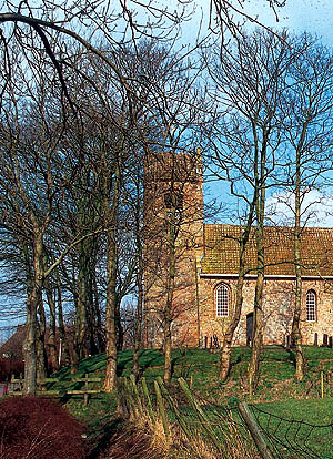 Die Dorfkirche datiert ursprünglich aus dem 12. Jh., was man am nördlichen Mauerwerk noch erkennen kann (Rundbogenfriesen in Tuffstein). Im 134. Jh. Wurde die Kirche vergrößert, der Satteldachturm entstand im 15. Jh. Das Kuppelgewölbe stammt noch aus der Kirche. Einiges ist davon auch heute noch zu erkennen. Ein Privatmann hat das reichlich verzierte Taufbecken aus dem 16. Jh. 1878 an das Friesische Museum in Leeuwarden geschenkt.