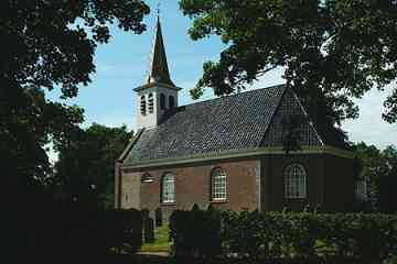 De eenvoudige zaalkerk met rondboogvensters is in 1758 op de plaats van de middeleeuwse kerk gebouwd. Het kleine houten torentje met spits dateert uit 1787. Tegenover de kerk strekt aan de noordwestzijde de voormalige pastorie zich in de breedte uit en daaromheen bevindt zich geconcentreerde bebouwing. Een stelpboerderij staat er wat ingeklemd. Oostelijk van de kerkterp ligt het kaatsveld.
