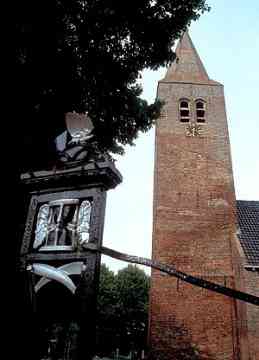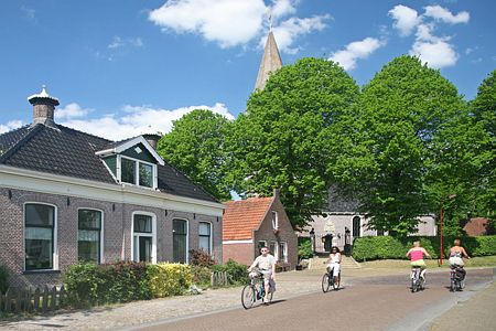 In de kern van het dorp staat de kerk met toren op een hoog en met bomen omzoomd kerkhof. De bakstenen toren dateert vermoedelijk al uit de 12de eeuw, maar later is de romp verhoogd en de bakstenen spits – een zeldzaamheid – is er vermoedelijk in 1603 opgezet. In de toren hangen twee door Petrus Overney gegoten klokken uit de tweede helft van de 17de eeuw. De kerk is herbouwd in 1663, volgens het opschrift van de omlijste ingangspartij is dat gebeurd na een storm. Het interieur heeft een 17de-eeuwse kansel en een marmeren grafmonument van Ulbo Aylva Rengers en zijn vrouw. Helemaal in het zuiden werd lange tijd op Maria Hemelvaart, 15 augustus, de Wildemarkt gehouden, een befaamde vee- en paardenmarkt.