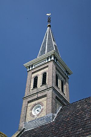 De dorpskerk staat op een sfeervol kerkhof. Zij doet met haar eigengereide vorm wel recht aan de bijzondere kerkelijke geschiedenis. Het is een kruiskerk die in 1896 is gebouwd van de gele baksteen. Het westwerk is enigszins geleed, maar wel gesloten en er steekt niet een dakruiter, maar een echte, slanke toren omhoog. Deze toren met de fraaie plastische invulling van de geledingen, de uurwerkplaten en de mooi gedetailleerde kroonlijst, doet sterk denken aan die van Schettens en Dedgum. Hoewel de architect onbekend is gebleven zou het Jan van Reenen kunnen zijn. Rondboogvensters en ronde vensters in de geveltoppen van de dwarsbeuken geven het gebouw een eigen karakter.