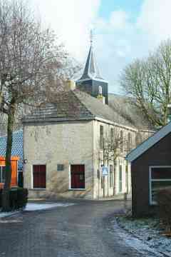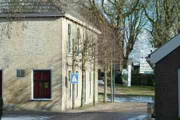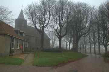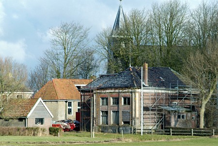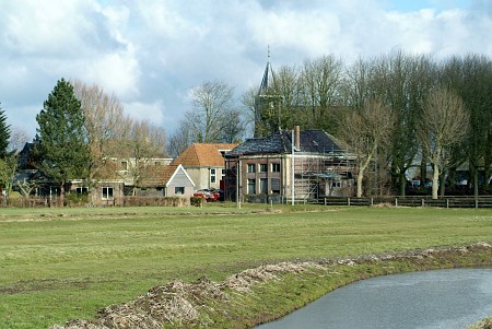 Tegenover de kerk ligt een ruime kamp land, het lage kaatsveld, omzoomd door aardige, hier en daar romantisch opgeknapte huisjes in een levendige afwisseling in maten, bekappingen en venstergeledingen. In samenhang met de hoge kerkterp vormt deze ruimte een fascinerend ruimtelijk contrast.