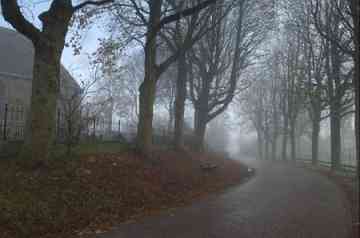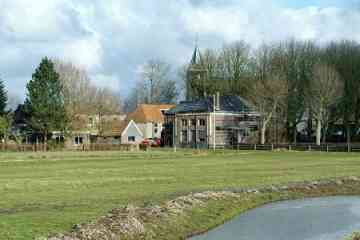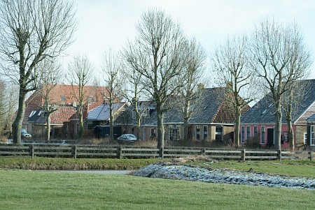 Vanaf de autoweg leidt een kromme weg de dorpskom in. In de buitenbocht staan wat huizen, in de binnenbocht de rijzige, voormalige en nu ruïneuze school die in een opknapbeurt gestold lijkt. Daarna verhevigt het profiel en verwijdt het perspectief. De dorpsstraat loopt op als hij langs de afgegraven kerkterp scheert en aan de zuidzijde opent het zicht zich over het ruime kaatsveld. De dorpsstraat wordt omzoomd door dichte reeksen kastanjes en begeleid door het voormalige café en thans het dorpshuis ‘De Murdhûn’, een twee lagen hoog gebouw van eenvoudige statigheid. Daarna volgen een paar lage huizen die het oplopende kerkpad begeleiden.
