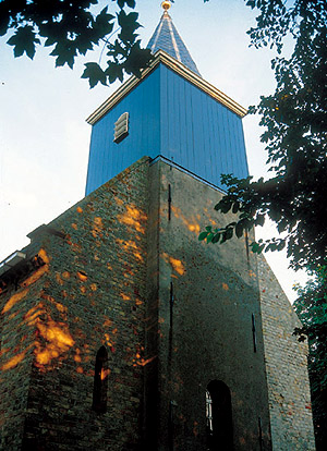 Dankzij de scherp afgestoken hoge terp lijkt de bescheiden kerk op te rijzen en het dorp aan de noordzijde te beschermen. Aan de naar de dorpskom gerichte zuidzijde is de kerk geheel met diverse malen gerepareerd betoncement besmeerd, met nog wel een aardig profiel om de ingang. Aan de west- en noordzijde is het oorspronkelijke bouwmateriaal zichtbaar: gele kloostermoppen met diverse reparaties. De kerk dateert van kort na 1200. Op de westelijke gevel is het torentje met een houten opbouw en spits geplaatst, waarin een klok, in 1617 gegoten door Hans Falck. De toren draagt een naar het dorp gericht uurwerk met anno 1929.