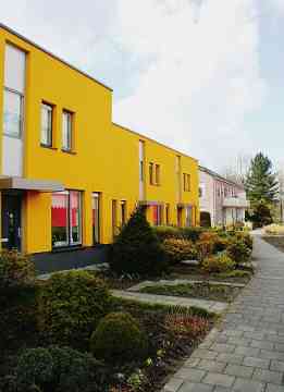 De Markstraat met vrijstaande middenstandswoningen uit voornamelijk de jaren dertig legt ten zuiden van de kerk de verbinding met de Hoornweg, met eenzelfde type bebouwing en ook naoorlogse woningen. Deze weg leidt in oostelijke richting naar het nieuwe dorpscentrum De Wending. Deze tot plein verwijde ruimte is het moderne winkelcentrum, omgeven door gebouwen met winkels en twee lagen appartementen erboven. Het plein is fris ingericht en voorzien van enig straatmeubilair, zoals een koepeltje en een uurwerkklok. Aan de Molenstraat staan het gemeentehuis en een bakstenen molenromp uit 1837, onlangs gerestaureerd en als winkel in gebruik. De Wendtsteinweg met eerst middenstandswoningen uit de vroege 20e eeuw en verderop iets jongere villa’s leidt naar de rotonde van de Kruisweg.