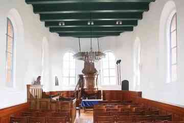 Van de kerk in het oude kerkdorp Marum is het smalle koor met de uitwendig vijfzijdige en inwendig halfronde sluiting in het tweede kwart van de 12e eeuw tot stand gekomen. Daarmee is zij een van de oudste bakstenen gebouwen van het Groningerland. Het brede maar korte schip en de toren zijn in het eerste kwart van de 13e eeuw toegevoegd. Door verschillende verbouwingen is het romaanse karakter en de fraai omkaderde ingangspartij wat naar de achtergrond verdwenen. De muren van de koorsluiting lopen naar beneden toe scheef af. Zo konden deze muren de krachten van het (inmiddels weggehaalde) stenen gewelf helpen opvangen. De toren toont zijn oude karakter evenmin duidelijk. Hij is in de 16e eeuw verhoogd en de verzakking naar het noordwesten is daarbij wat gecorrigeerd. Ook de ingesnoerde spits is recht gezet, waardoor het geheel enigszins krom is geworden. De herenbank draagt het wapen van Van In- en Kniphuisen, het geslacht dat in de 17de en 18e eeuw veel invloed had in zuidelijk Westerkwartier.