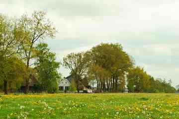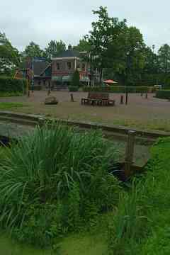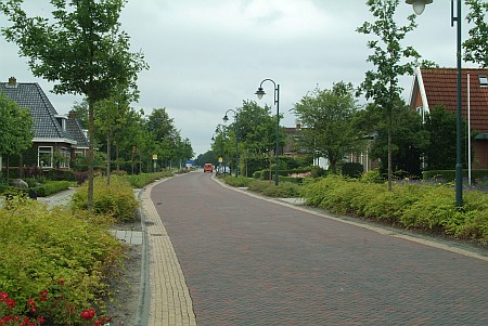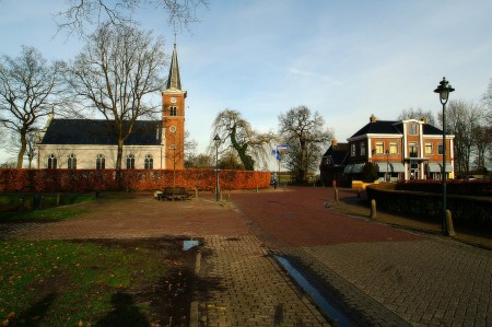 Tegenover de kerk is een soort plein gevormd waar enkele woningen en het café op zijn gericht, even noordelijker staat een voormalig tolhuis van omstreeks 1890. Aan de Kommisjewei staat een verscheidenheid aan woningen en (soms monumentale) boerderijen.