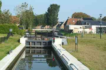 Die sluis is reeds voorlang weggeruimd. Het is thans eene groote buurt, meest uit arbeiderswoningen bestaande, ter wederzijden van den ouden dijk en de vaart naar Oude-Bildtzijl. Te midden daarvan staat het nieuwe en groote schoolgebouw van het dorp Finkum, waartoe dit gedeelte, ter zuidzijde der vaart, behoort.’
