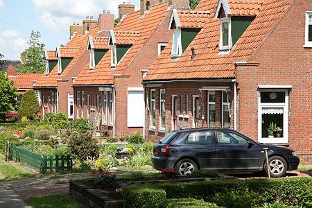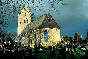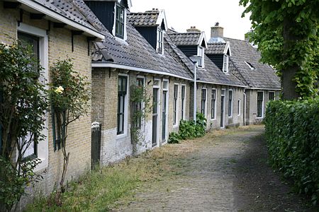 Het dorp heeft een ruim kerkhof met een ijzeren hek op muurtje en een zoom van niet zeer oude linden. Ten noorden van de kerk staat in een halve kring een prachtige reeks diaconiewoningen, gebouwd van de in deze streek zo kenmerkende gele steentjes: de Friese drielingen. Daartegenover liggen de mooie buren, de Grote Buren met nogal wat goed onderhouden en gevarieerde notabele woningen.