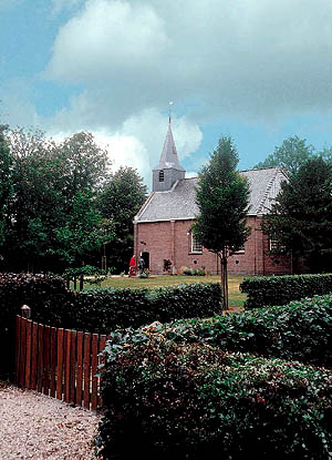 De tsjerke sûnder toer is yn de betide 12e ieu boud fan dowestien mar is letter feroare. De dowestiennen noardlike muorre is noch hielendal yn it sicht; de westlike muorre is yn de 18e ieu yn reade bakstien restaurearre en letter binne de súdlike en eastlike muorren ommitsele. Op it dak lizze glazuere Lucas IJsbrandpannen. By de tsjerke is in opmerklike fynst dien: in sarkofaachdeksel fan griisgiele sânstien út de 12e ieu – ûngefear like âld as de tsjerke – mei in foarstelling fan in yn in pij klaaide man en mei in dekorative rânefersiering. It seldsume keunstwurk is no yn it Fries Museum yn Ljouwert.