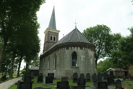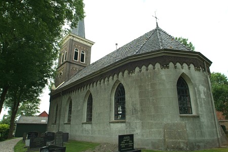 De kerk staat op een hoog kerkhof, het restant van de terp. Het bouwwerk lijkt in zijn gepleisterde uitdossing vrij nieuw, maar dateert al uit de 13de eeuw, misschien zelfs van eerder, blijkens de nagenoeg ronde koorsluiting. De spitsbogige vensters zijn vóór de 19de eeuw aangebracht. De stuclaag is in de 19de eeuw op de buitenkant gesmeerd. De pleister vertoont schijnvoegen om natuursteenblokken te suggereren. Het muurwerk wordt bekroond door een rondboogfries van bruine baksteen steunend op gestucte consoles. Aan de zuidzijde zit de toegangspartij in een spitsboognis en in het timpaan is een barokke gedenksteen aangebracht. Die deelt iets over de torenbouw mee waar we niets meer aan hebben: ‘Int jaar 1742 is deze Tooren vernewt onder de Ed. HEER EDZARD Van SMINIA Grietman over Hennaarderadeel…’ enz. De huidige toren dateert beslist niet uit het midden van de 18de eeuw, maar is een kenmerkend product van het laatste kwart van de 19de eeuw.