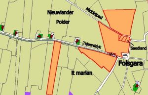 toegevoegd worden. In 1511 is het land verdeeld in ‘Grasland, Hoijland en Saedland’. Het ‘Grasland’ ligt tussen de Tsjaerddyk en het Middelpad. ‘Het ‘Hoijland’ ten zuiden van de Tsjaerddyk in ‘die Meeren’ met een klein perceel ten noorden van het kerkhof. Het ‘Saedland’ ligt langs het Middelpad.