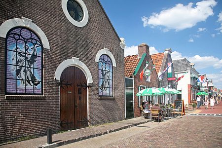 De hervormde kerk uit 1728 doet mee in het straatbeeld van de gesloten bebouwing, maar valt op door de grotere omvang en het op de voorgevel geplaatste torentje. Volgens het gebrandschilderde raam is de bouw van de kerk geleid door meester timmerman Roelof Saegman. Aan de overkant staat het in 1862 gebouwde kerkje van de doopsgezinden en verder naar het westen de rooms-katholieke Sint- Ludgeruskerk, een neogotische, driebeukige basilikale kerk met een hoge toren, in 1883 gebouwd naar ontwerp van Alfred Tepe. Binnen zijn schilderingen van Johannes Ydema en het hoofdaltaar is afkomstig van de gesloopte Michaëlskerk in Zwolle.