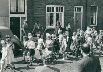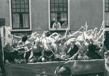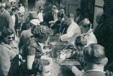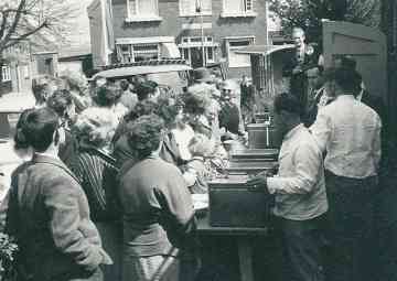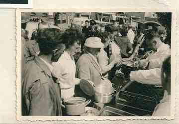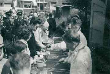 Sfeerbeeld van de Bevrijdingsfeesten 1960. Het feest werd dit jaar groot gevierd. Voor de bevolking werd er speciaal een éénpans maaltijd bereid.