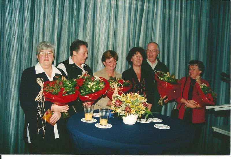 Lia Visscher, Bep Rosmolen, Netty Beving, Nelliie Smidt, Nico van Dijk en Hanne