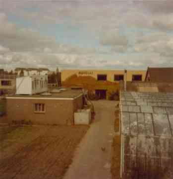 Opname vanuit de woonark richting Katwijkerweg over de tuinbouwgrond van kweker
