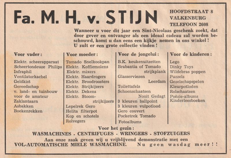 Eind november in de jaren 60 prijst fa. van Stijn de cadeauartikelen uiterst ges
