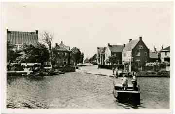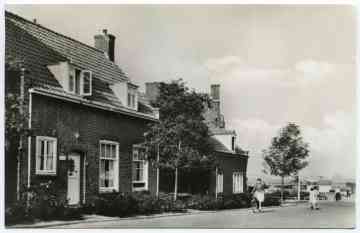 Vanuit de Broekweg een blik naar het Veerhuisje, welke op de achtergrond te zien