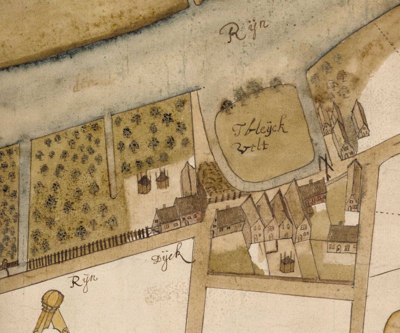 Kaart van de directe omgeving van het Bleekveld Bron: Hoogheemraadschap van Rijnland, kaart A-1707, circa 1630
