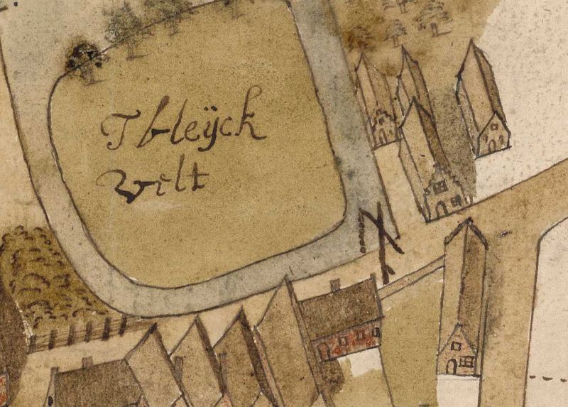 Dit wordt prachtig bevestigd door het volgende kaartje van de directe omgeving van het Bleekveld van Valkenburg, uit omstreeks 1630: