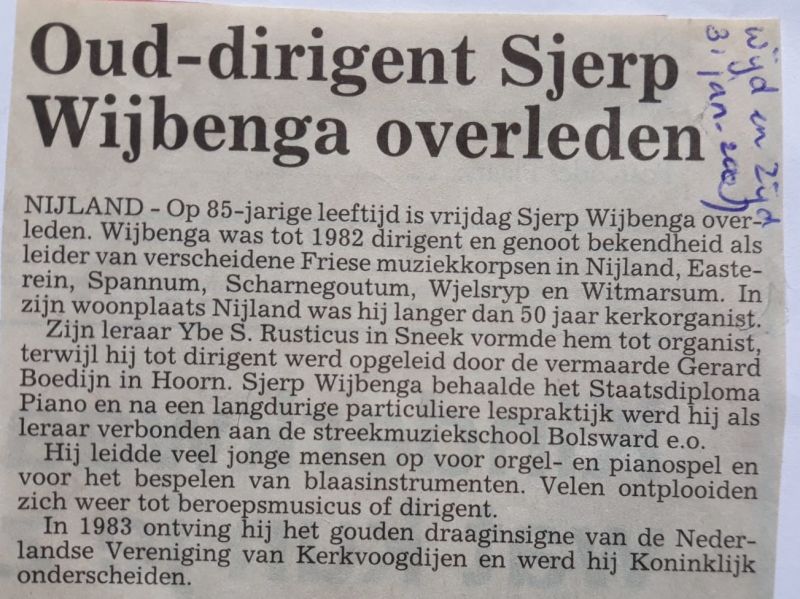 Toen de korpsen aan het eind van de 19-de eeuw werden opgericht waren er nog geen beroepsdirigenten zoals wij die nu kennen. Toch moest er wel iemand de muzikale leiding hebben. Vaak was dat een onderwijzer uit het dorp. Zo ging dat in Easterein ook. De eerste jaren had meester Kornelis Nettinga de leiding. In de twintiger- en dertiger jaren zijn het de muzikanten van het “Stafkorps Leeuwarden’ die dirigent worden van verschillende muziekkorpsen.