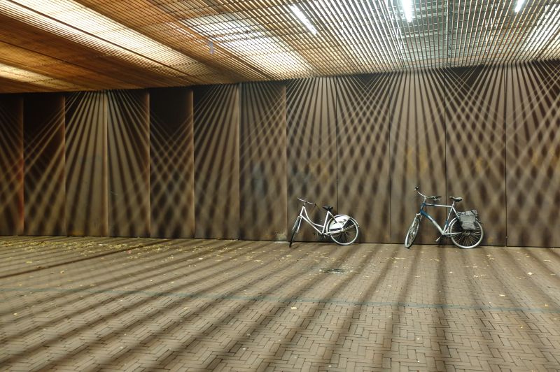 Naast al dit moois is er ook een monumentaal busstation. Daar was ik me eigenlijk niet van bewust tot op een avond tijdens het lichtfestival "Licht op Drachten". Na afloop, tijdens het napraten in De Lawei, merkte ik op dat het busstation wel een van de mooiste composities van licht en schaduw liet zien. Zeker met die twee strategisch geplaatste fietsen als rekwisiet.