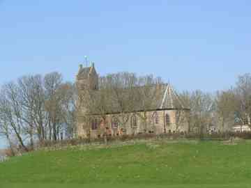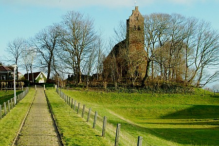 Hegebeintum wie oan de westkant troch de Ferwerter Feart ûntsletten. De doarpstsjerke is in frij geve, 12e-ieuske dowestiennen tsjerke mei in wat ynspringend koar mei in healrûne abdis. It muorrewurk mei âlde spoaren hat spitsbôgefinsters krigen. Oan de westkant is de tsjerke mei kleastermoppen fergrutte, dêr‘t yn 1717 de hjoeddeiske sealdaktoer kaam. Yn it ynterieur kamen restanten foan muorreskilderingen foar it ljocht. In dûbele hearebank út 1762 mei in rococo tûfestik foar de famylje De Schepper-Coehoorn van Scheltinga stiet der te pronk. De fyftsjin ryk fersierde roukassen en wapenbuorden út de 18e ieu fan leden fan de famyljes Van Coehoorn, Nijsten en De Schepper dominearje it ynterieur.